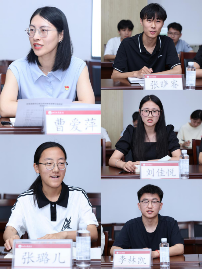 座谈中,tyc5997太阳集团党委副书记、院长杨永清汇报了学院深入贯彻中央八项规定精神学习教育开展情况并交流学习心得。党委副书记王雁霖结合工作实际分享学习体会。学生第二党支部书记、辅导员曹爱萍重点介绍了在学生党员教育管理中的实践探索。随后,学生代表安全2301班班长张晓睿,安全2301班团支书张璐儿,学生第二党支部预备党员刘佳悦、党员李林凯依次发言,围绕个人理想与专业发展、学院学风建设与党风建设、学校发展战略和任务等主题,分享了各自的观点与感悟,提出了建议和期待。