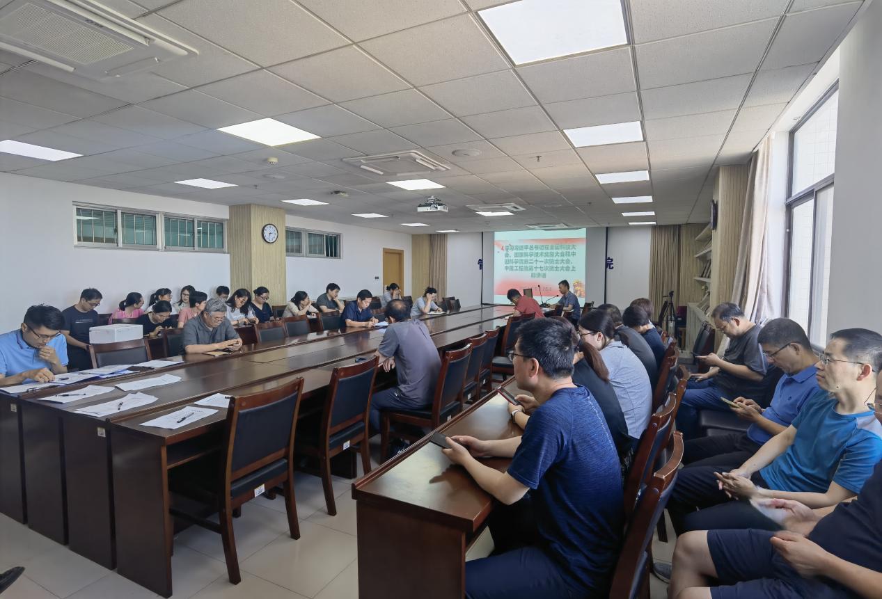 会上,陈长征书记带领全体教职工共同学习《习近平总书记在全国科技大会、国家科学技术奖励大会和中国科学院第二十一次院士大会、中国工程院第十七次院士大会上的讲话