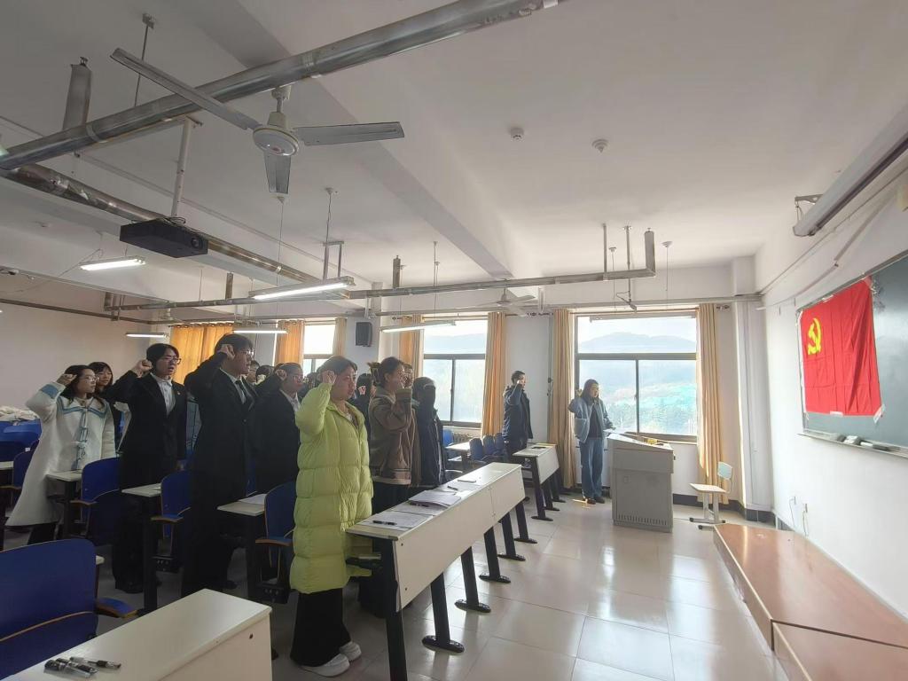 本次会议严格按照党组织发展要求和程序进行,分为预备党员接收与预备党员转正两个议题。首先,发展对象宣读《入党申请书》并介绍情况,经正式党员讨论及无记名投票,一致同意鹿子昂等10人成为预备党员。接着,会议进行第二项,预备党员汇报预备期表现,全体党员讨论后,进行无记名投票,董骏等25名预备党员全票通过,转为正式党员。会议最后,全体与会人员面对党旗进行入党宣誓。