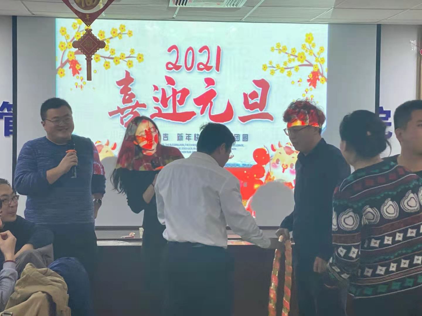 2020年12月29 日下午,tyc5997太阳集团全体教职员工欢聚一堂,共同迎接新年。茶话会活动分为领导致辞、表演和游戏三个环节。首先学院领导总结了学院一年来的发展和取得的成果,并致新年祝词,希望在新的一年里,全体教职工团结协作、锐意进取、再创辉煌;随后表演环节,各个教研室教师准备充分、各显其能,表演了诗朗诵、合唱、独唱等丰富精彩的节目,受到全体教职工的热烈欢迎;最后的游戏环节,“春风扑面”、“鱼跃龙门”、“我们是一家人”各位老师充分发挥团队协作与竞争精神,使整个活动气氛热烈、热闹非凡。