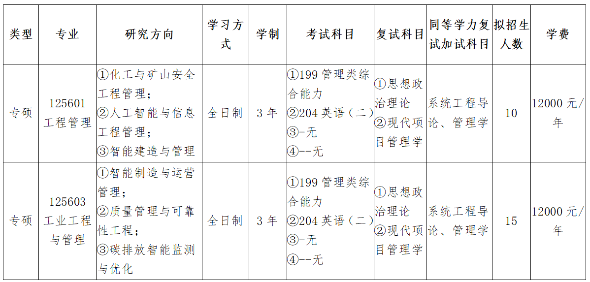 学校拥有驻烟高校中唯一的MEM专业学位授权点,MEM工程管理硕士研究生的培养注重提供核心管理领域与工程技术领域知识,以培养“知行合一”的人才为理念,注重“工程+管理+数智”的结合,面向新质生产力,以“经营管理+工程技术”的培养体系,实现学生经营管理知识和专业知识的双向提升。开设智能制造与服务工程管理、智能交通与物流工程管理、工程项目(群)与敏捷项目管理、大数据与工程信息管理、能源与环境工程管理、复杂装备工程管理、生态智慧供应链等特色方向专业课程模块,实现技术与管理的结合、理论与实践的结合,为学生职业发展提供全方位、针对性的指导和服务,培养满足社会与行业需要的人才。