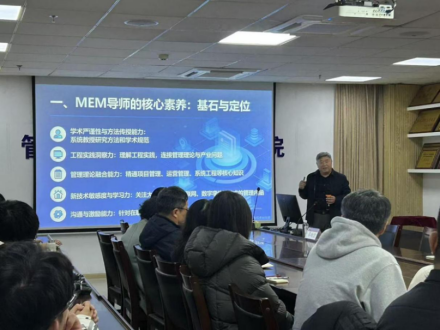 2025年12月25日,我院在六教6801会议室举办“MEM导师全链条指导路径”培训。学院负责人、MEM研究生导师及MEM研究生参加。
