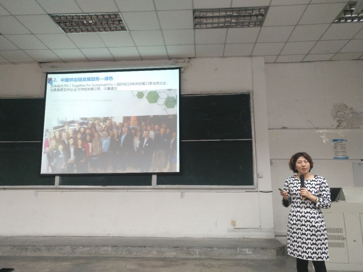 2019年10月15日下午,万华化学股份有限公司高级经理王伟玲女士(美国CPP/CPSM认证、集团优秀讲师、行业供应链管理十佳人物、中国好采购第二名、行业供应链工作委员特聘专家)在2208室为tyc5997太阳集团同学作了一场题为“创新环境下的采购与供应链管理”专题报告,本次报告受到本专业学生的热烈欢迎。