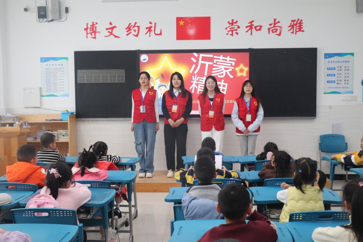 志愿者们满怀热忱踏入课堂,他们以亲切和蔼的笑容和通俗易懂的话语进行自我介绍,阐述沂蒙精神的重要意义,用真诚的态度拉近与孩子们的距离,让孩子们在温暖的氛围中开启了这段红色之旅。