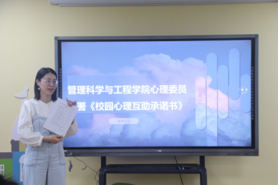 培训会上,曹爱萍老师通过如何开好心理主题班会、角色定位与职责、常见心理问题识别以及发现问题应对措施四个方面,为心理委员们传授心理健康知识与实用的朋辈沟通技巧。并借本次培训会发出倡议,通过签署《校园心理互助承诺书》,使同学们深刻认识到朋辈互助在心理健康防护中的重要作用,更为学院的心理健康教育工作注入了持续发展的内生动力;培训期间,心理委员代表模拟召开主题班会,融入基于艺术治疗理论的粘土创作活动将抽象情绪具象化,激发积极情绪,结合触觉刺激促进身心放松,帮助学生在沉浸式创作中实现压力释放。将培训内容转化为实践成果。