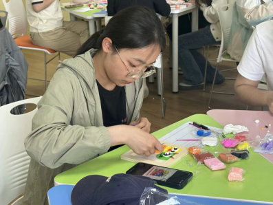 活动以创意手工为切入点,鼓励学生借助粘土这一独特媒介,将内心情绪和对事物的认知具象化,在提升自我认知的同时,培育心理韧性。活动现场气氛热烈,学生们参与热情高涨,纷纷拿起工具开启创意之旅。在创作过程中,他们充分发挥想象力,用缤纷多彩的粘土塑造出充满活力的作品,鲜艳的色彩传递着内心的喜悦,细腻的造型展现着对生活的独特理解。从初步构思到细节雕琢,每一步都倾注了学生们对艺术的热爱和对自我表达的执着追求。创作结束后,现场同学们积极交流创作心得,分享作品创作背后的心境、创意来源等,进一步营造本次活动开放、分享的氛围。