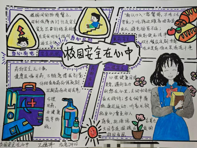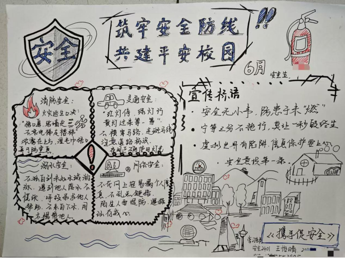 同学们充分发挥创意,将各类安全知识巧妙融入到手抄报中。手抄报作品图文并茂,既展现了同学们的设计才能与美学素养,也体现大家对校园安全问题的深刻理解和思考。经评选,评选出了一批优秀作品。