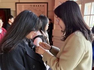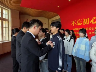 入团仪式在庄严肃穆的国歌声中拉开序幕,主持人依次宣读新团员名单。新团员的加入,为共青团注入了新鲜血液与蓬勃朝气。随后,老师、党员代表与优秀团员代表为新团员郑重佩戴团员徽章,共同见证这群青年学子开启青春新征程的光荣时刻。