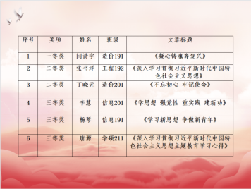 为深入开展“学习贯彻习近平新时代中国特色社会主义思想主题教育”,深刻理解和把握习近平新时代中国特色社会主义思想的精神实质和丰富内涵,用马克思主义中国化时代化最新成果武装头脑,学院党支部组织开展学习贯彻习近平新时代中国特色社会主义思想主题教育学习心得优秀征文评选比赛。