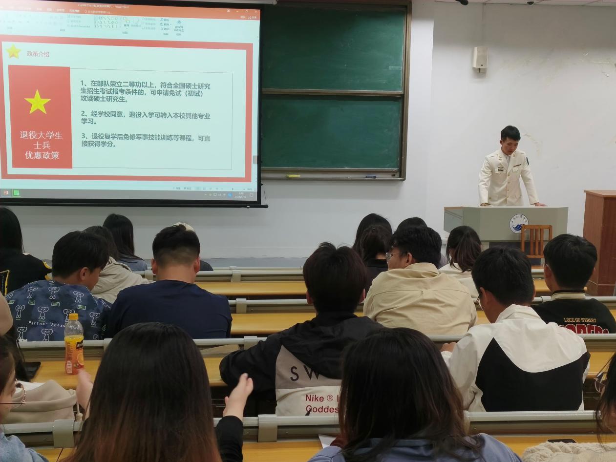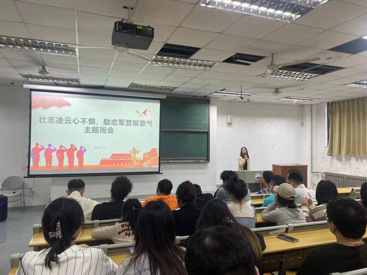 为激发同学们参军报国热情,营造爱国强军的文化氛围,5月21日,我院举办了以“壮志凌云心不惧,励志军营展豪气”为主题的班会,本次班会由毕业班辅导员主持,2020级同学参加。