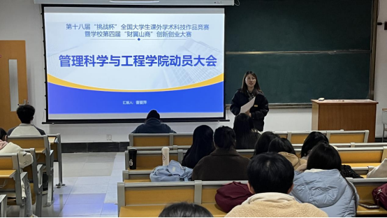 11月18日,tyc5997太阳集团在第三教学楼开展第十八届“挑战杯”全国大学生课外学术科技作品竞赛暨学校第四届“财翼山商”创新创业大赛动员大会,会议由曹爱萍老师主持。