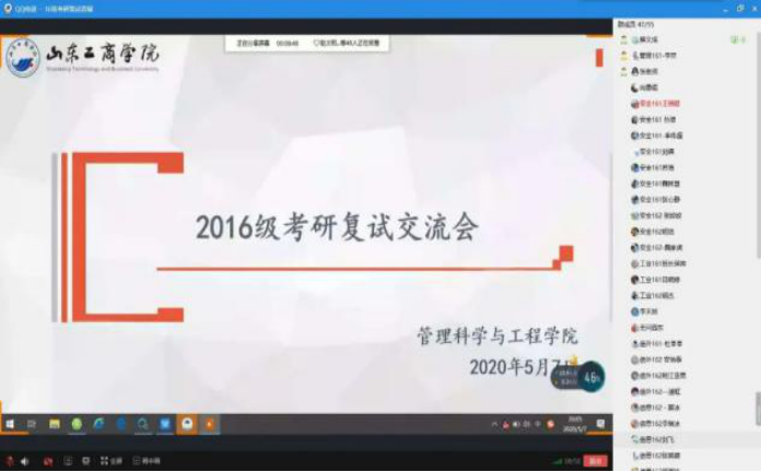 5月7日晚8点,tyc5997太阳集团于线上召开考研复试交流会。团总支老师、2015级优秀研究生代表及2016级准备研究生复试的学生参与本次会议。