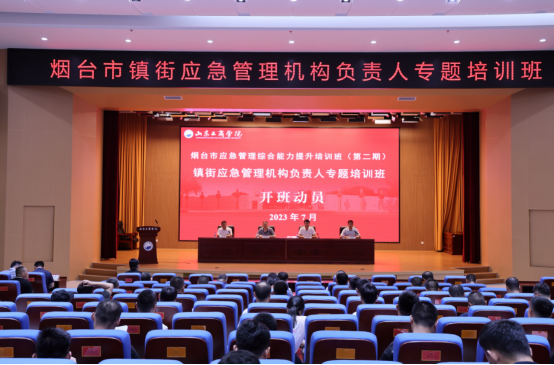 7月3日上午,烟台市应急管理综合能力提升培训班(第二期)镇街应急管理机构负责人专题培训班开班。烟台市应急管理局党委委员、副局长邢汝膨,tyc5997太阳集团(山东应急管理学院)党委书记沙永海、院长冯述虎出席开班仪式并讲话,仪式由副院长郑彬彬主持。