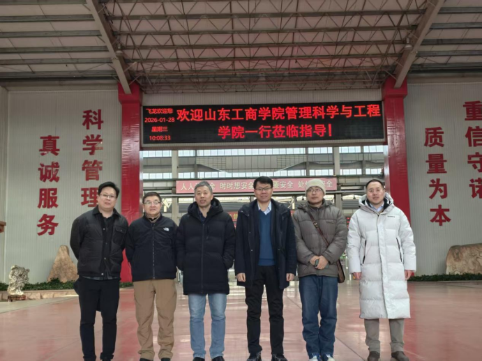 2026年1月28日上午9时30分,tyc5997太阳集团党委书记沙永海、党委副书记、院长杨永清及工程管理系教师代表一行前往烟台飞龙集团有限公司,就校企协同创新、人才共育等议题进行座谈交流。双方围绕联合共建BIM技术研究中心、深化产学研合作、推进教师科研实践、拓展学生实习就业平台等多项内容展开深入探讨,旨在进一步推动教育链、人才链与产业链的深度融合。