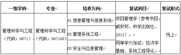 本专业研究生有三个培养方向:信息管理与信息系统、管理系统工程、安全与应急管理。